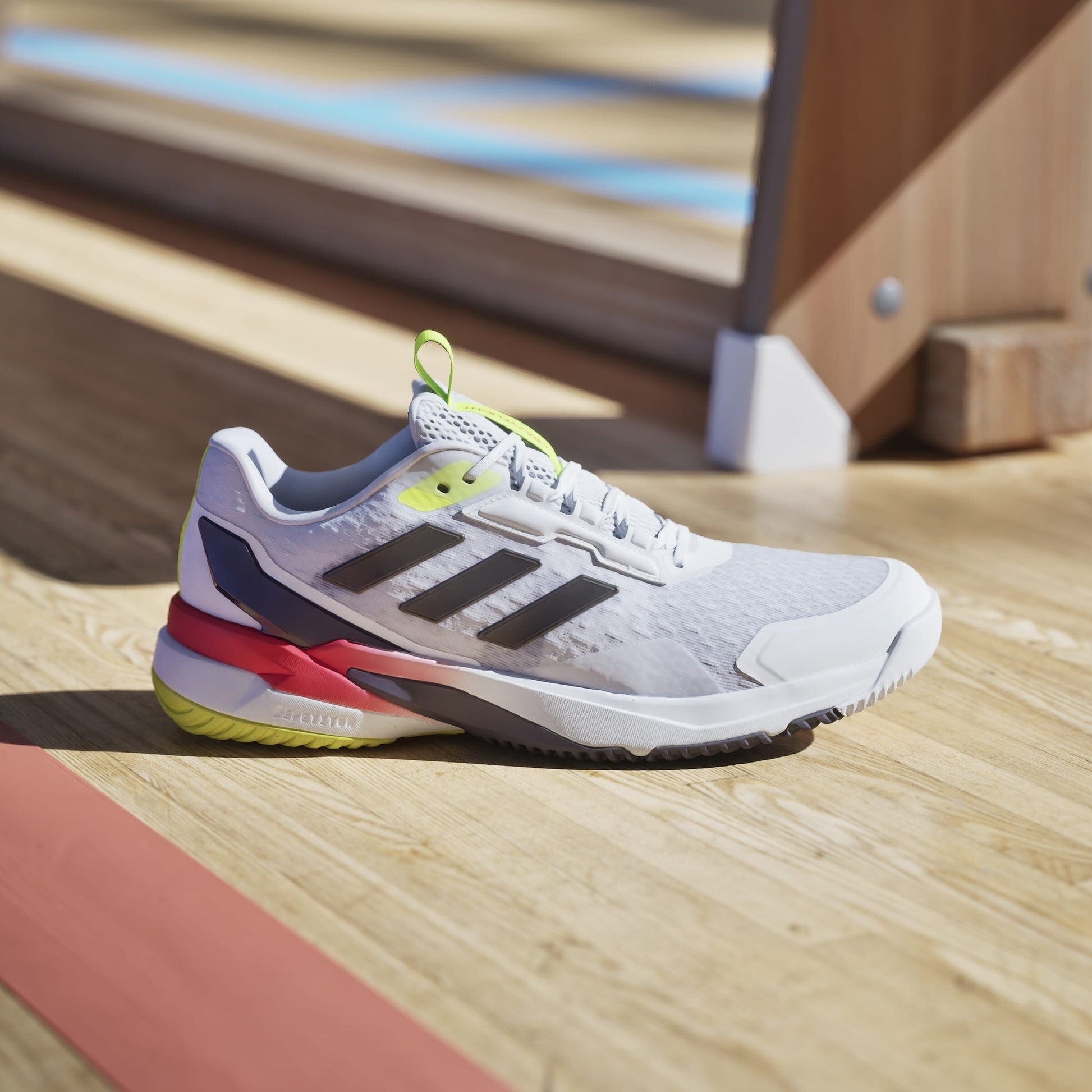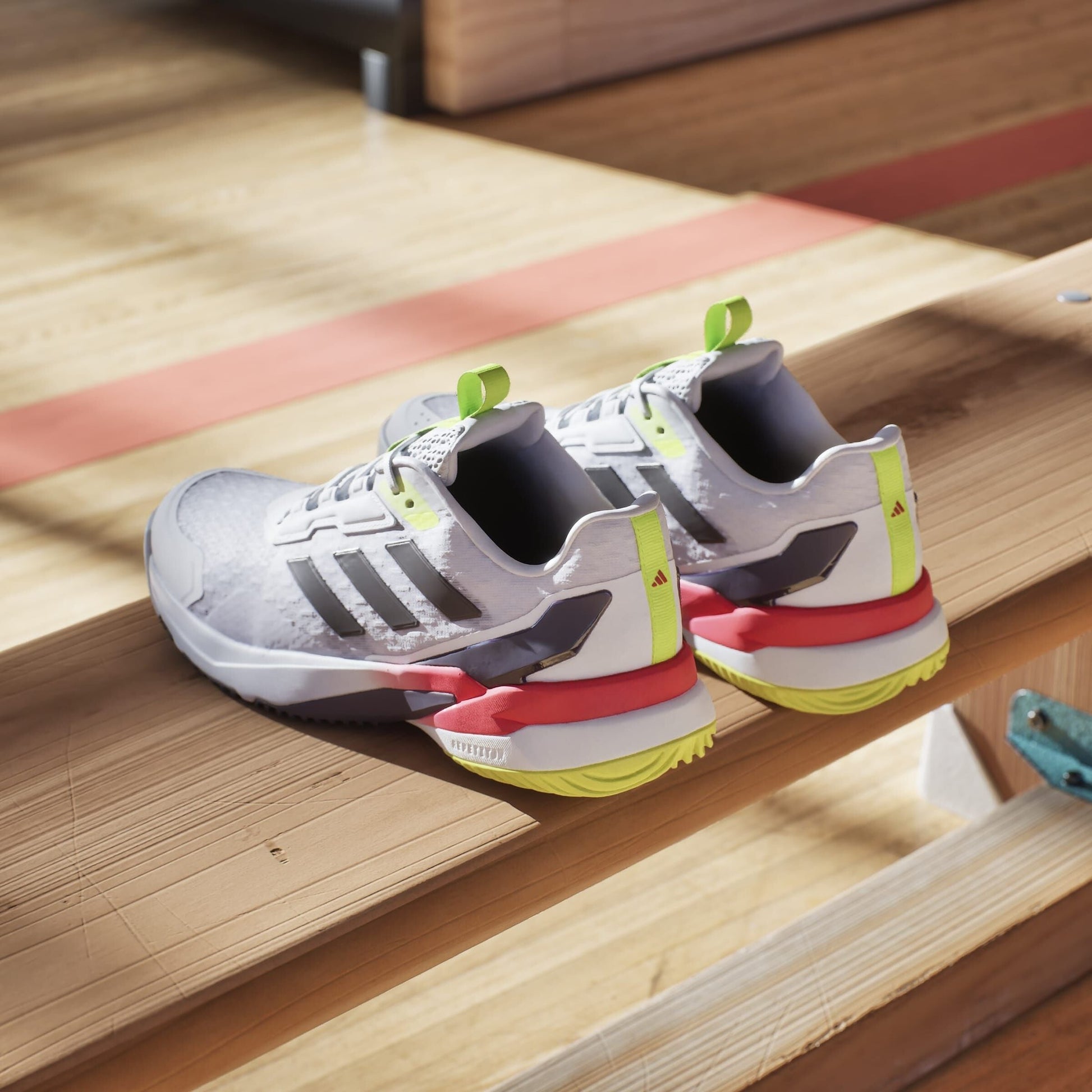 A breathable mesh upper with soft lining keeps your feet cool across long matches, while Adidas BOOST cushioning gives you extra lift on take-off and reliable comfort on impact. The TPU heel counter adds stability for quick changes of direction, and the grippy rubber outsole is designed for maximum traction on indoor courts