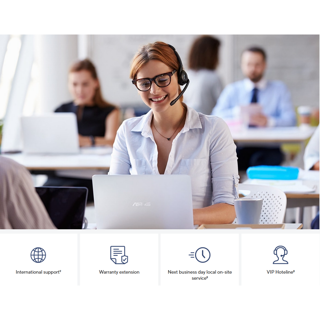 ASUS offers comprehensive support for businesses of all sizes with ASUS Business Support, maximising efficiency and minimising IT management overhead. Our flexibility, world-class expertise, and support such as international warranty, repair reports and VIP hotline allow you to focus on growing your business to incredible heights.