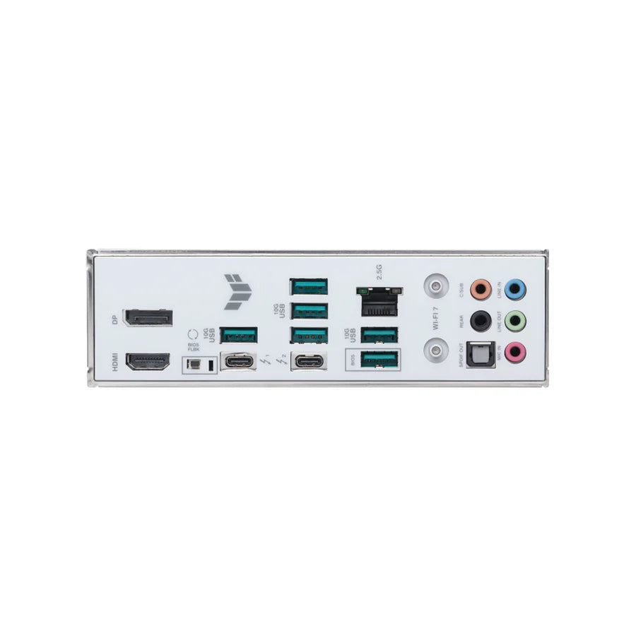 - WiFi 7: The next-gen WiFi 7* supports 160 MHz bandwidth in the 6 GHz band and 4096 QAM. Multi-Link Operation (MLO) ensures stable connections and low latency, supporting 2.4, 5, and 6 GHz bands for enhanced coverage and throughput.