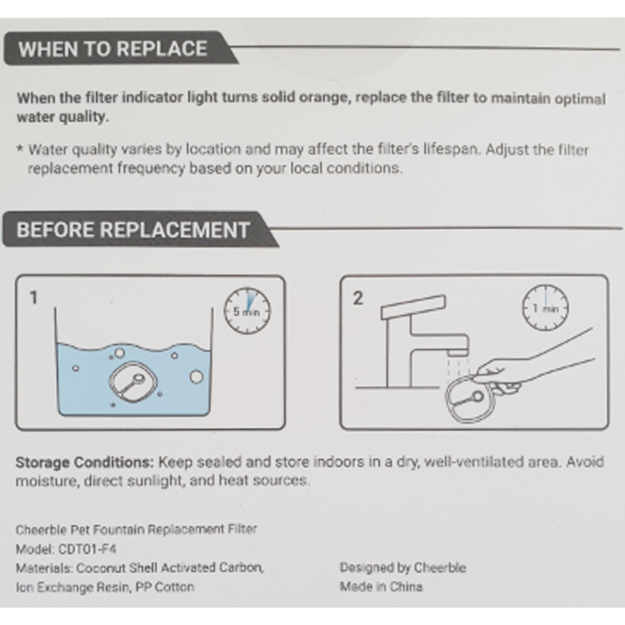 - Perfect Compatibility: Designed specifically for the Cheerble E1 & E1+ Smart Sensor Fountain, ensuring a perfect fit and maximum filtration efficiency.