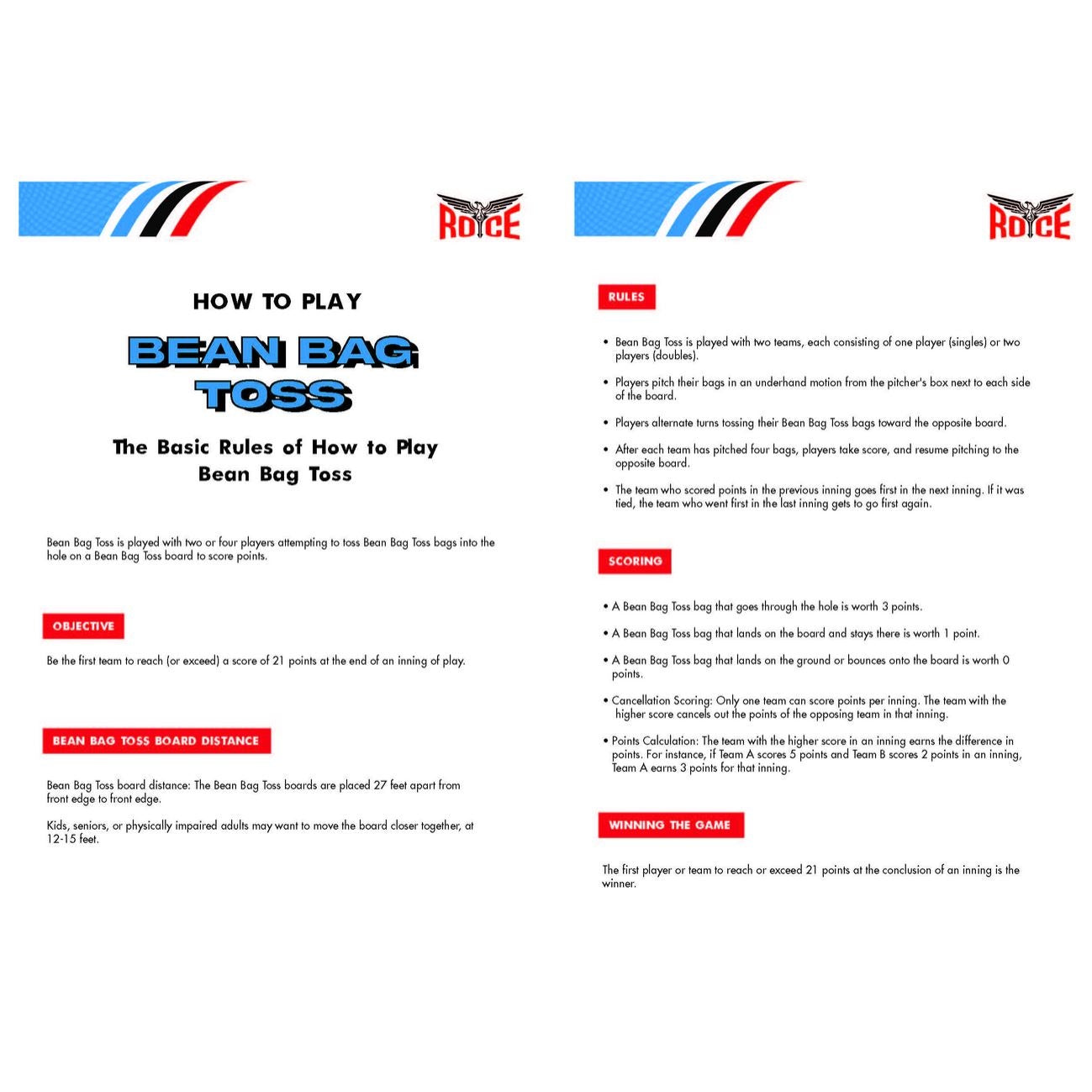 Royce Classic Wooden Bean Bag Toss Board (2 Boards) - Backyard Cornhole Game Set
