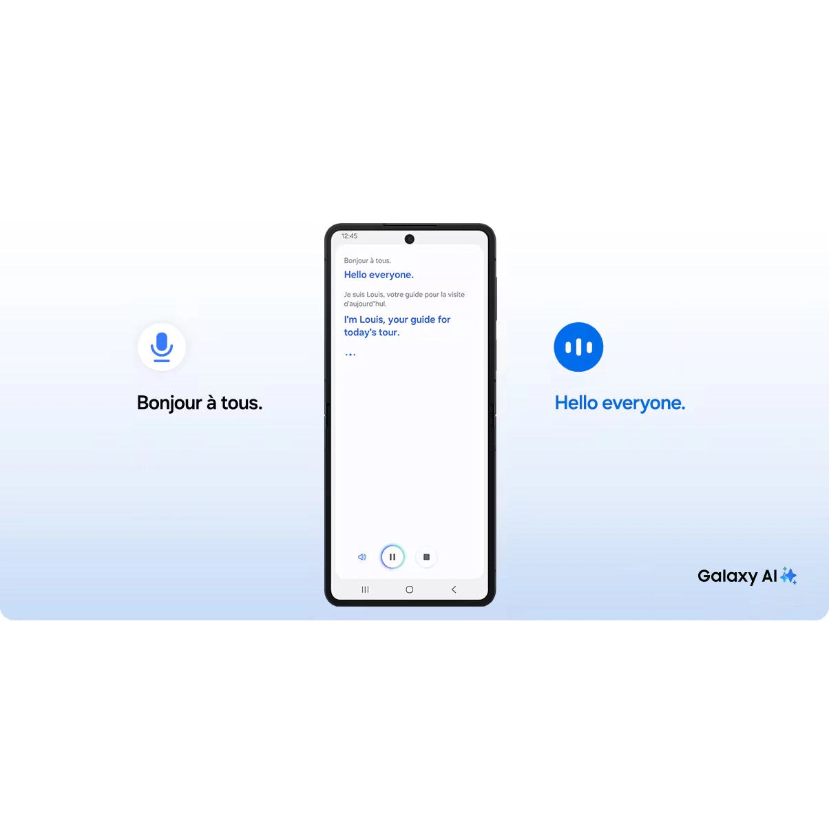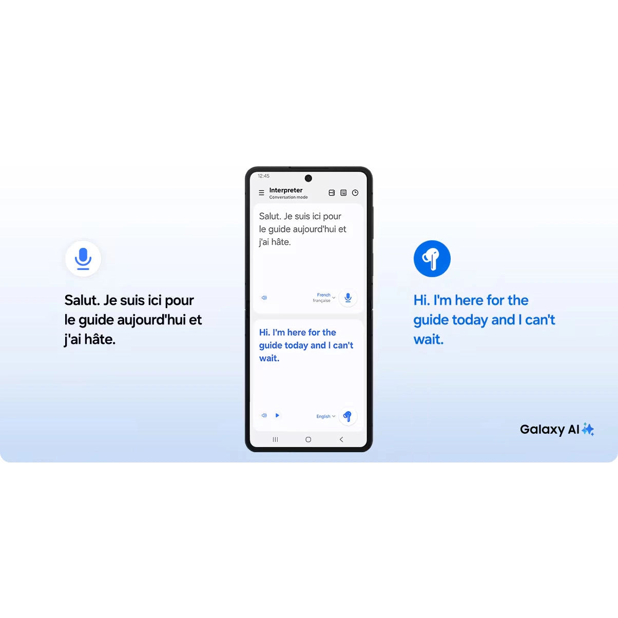 Bridge language gaps in your conversations with Galaxy AI's Interpreter. Hear translations in real time and stay focused on your conversations without glancing at your phone screen. Now, you can enjoy hands-free interpretation wherever you go.