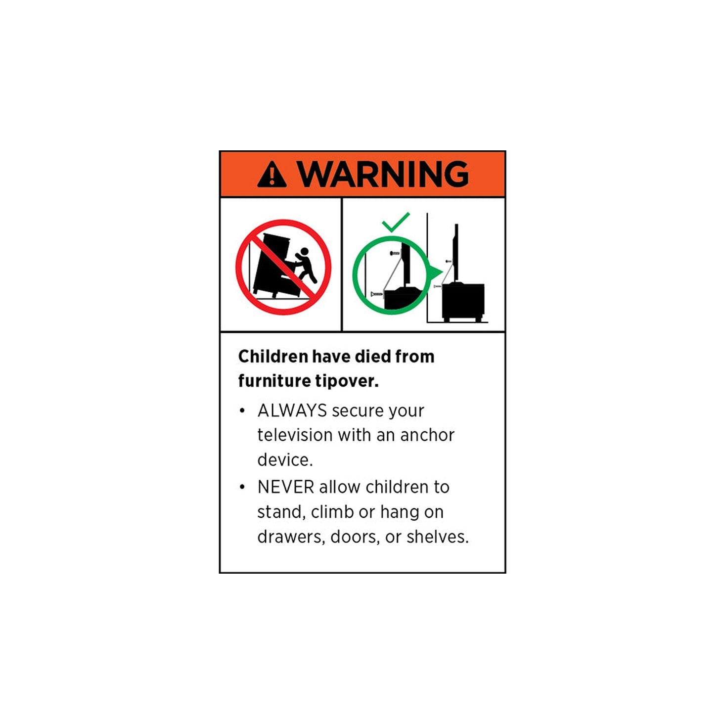 - ALWAYS secure furniture with an anchor device.