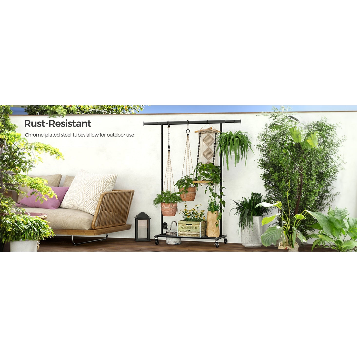 - 4 flexible wheels rotate 360 degrees - 2 lockable wheels keep the rack in place anywhere and anytime