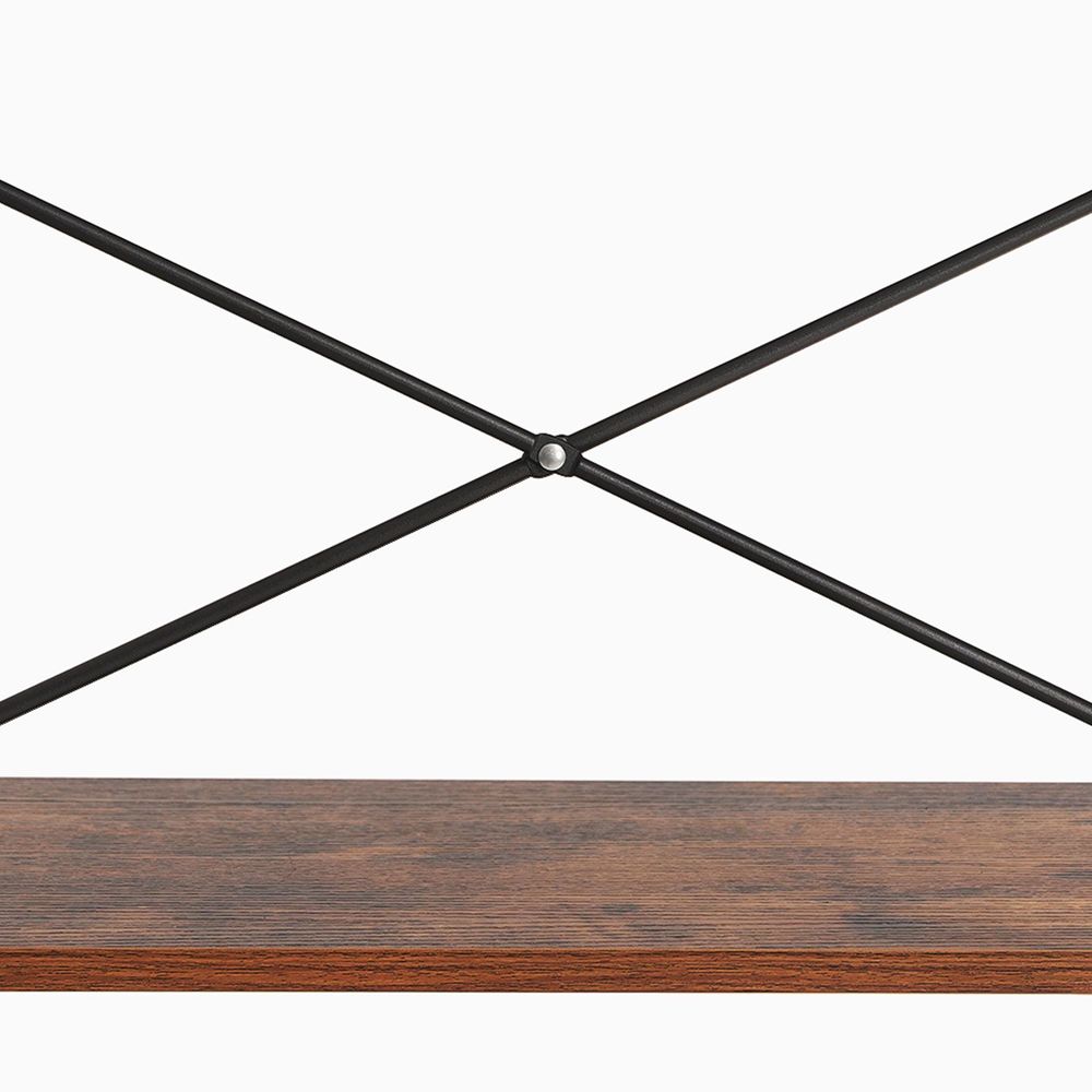 Sturdy matte-black steel frame, x-bars, and rustic brown shelves - the mix of styles makes this elegant bookcase stand out; it boasts individual character and a remarkable durability.