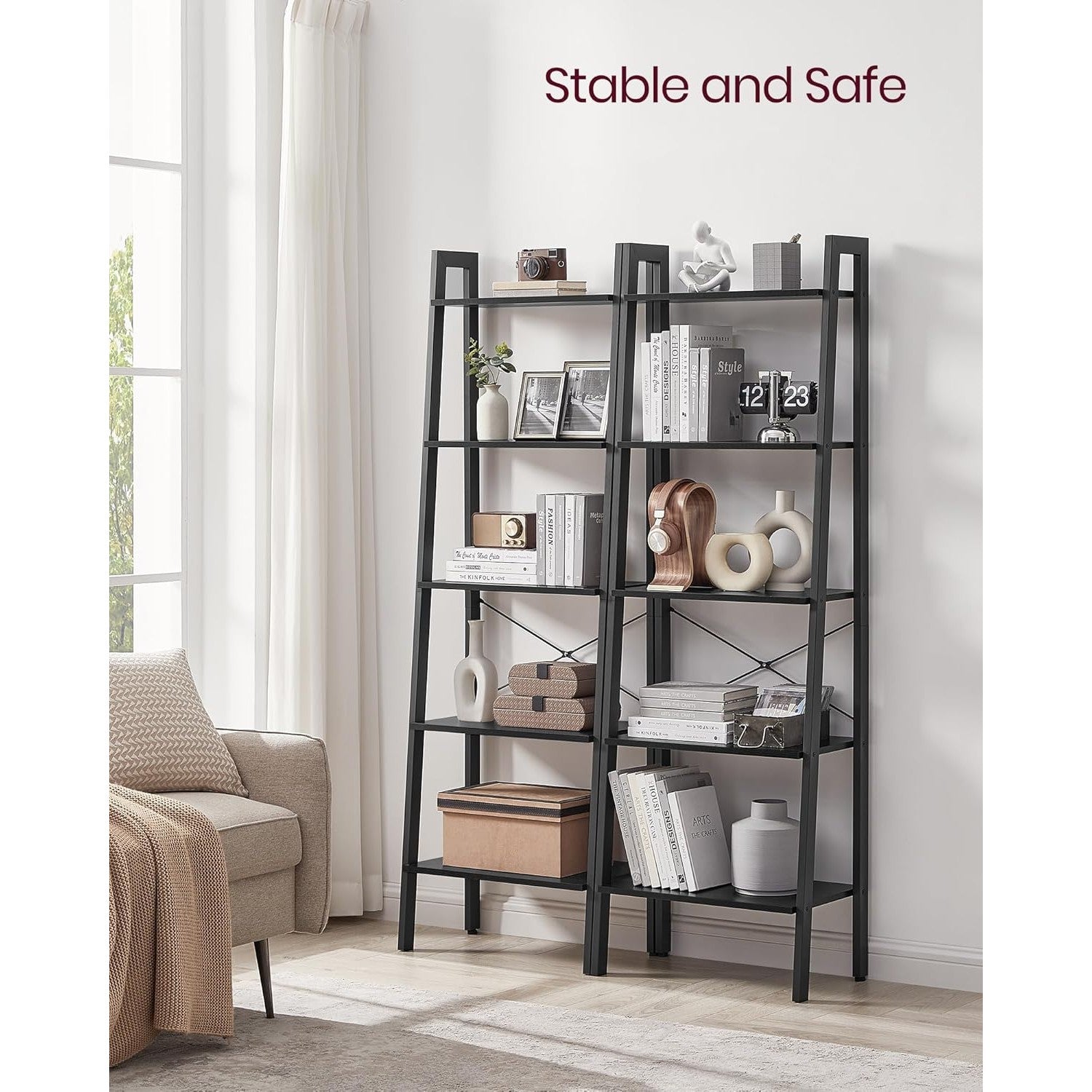 VASAGLE 5-Tier Ladder Shelf Bookshelf Bookcase Storage Rack (Ink Black & Rustic Brown)